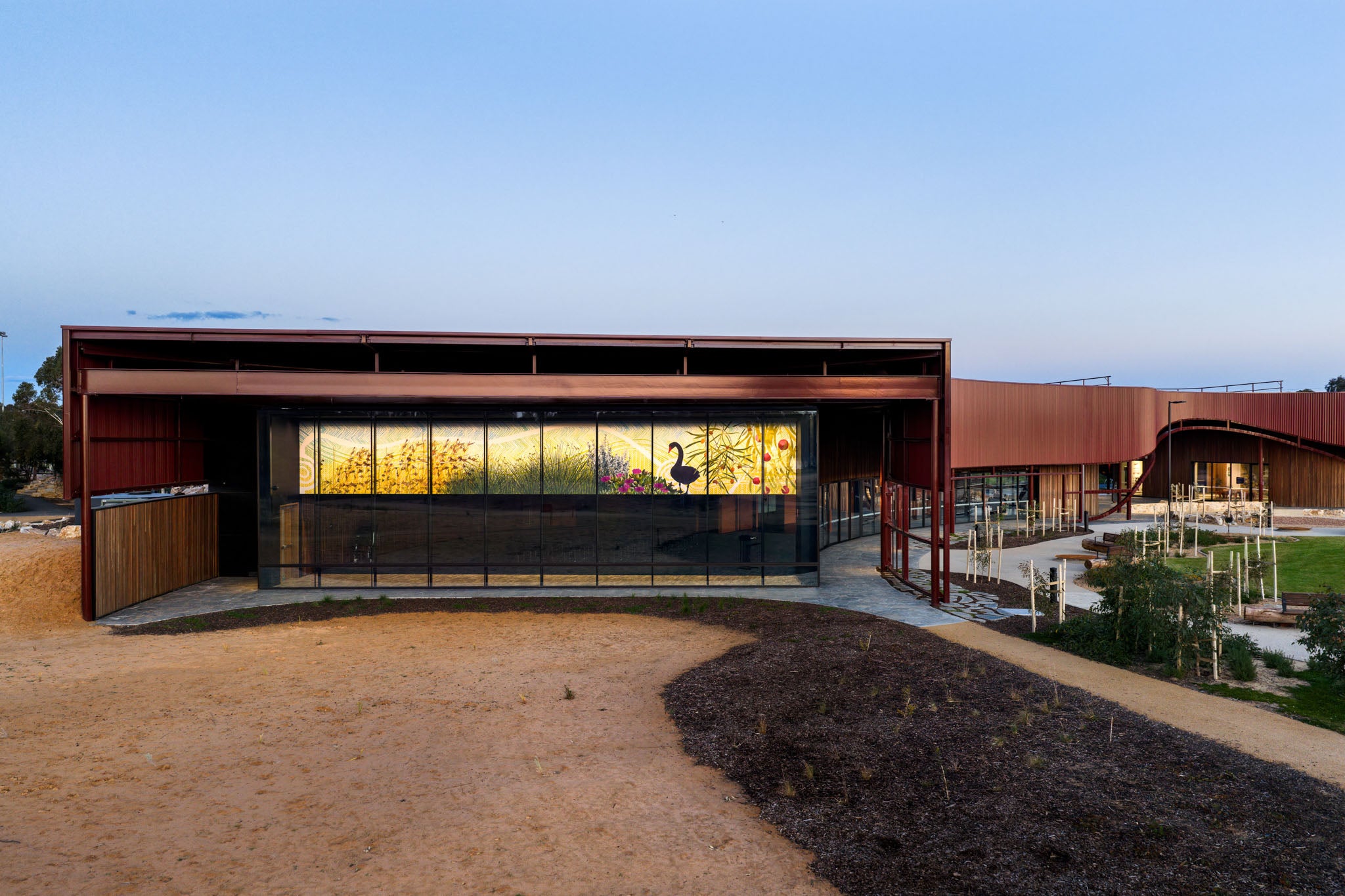 Developed in deep partnership with Kaurna Elders and community, and delivered with the City of Port Adelaide Enfield, Ashley Halliday Architects, and Sarah Constructions, the work embodies a strong collaboration between art, architecture, and culture.