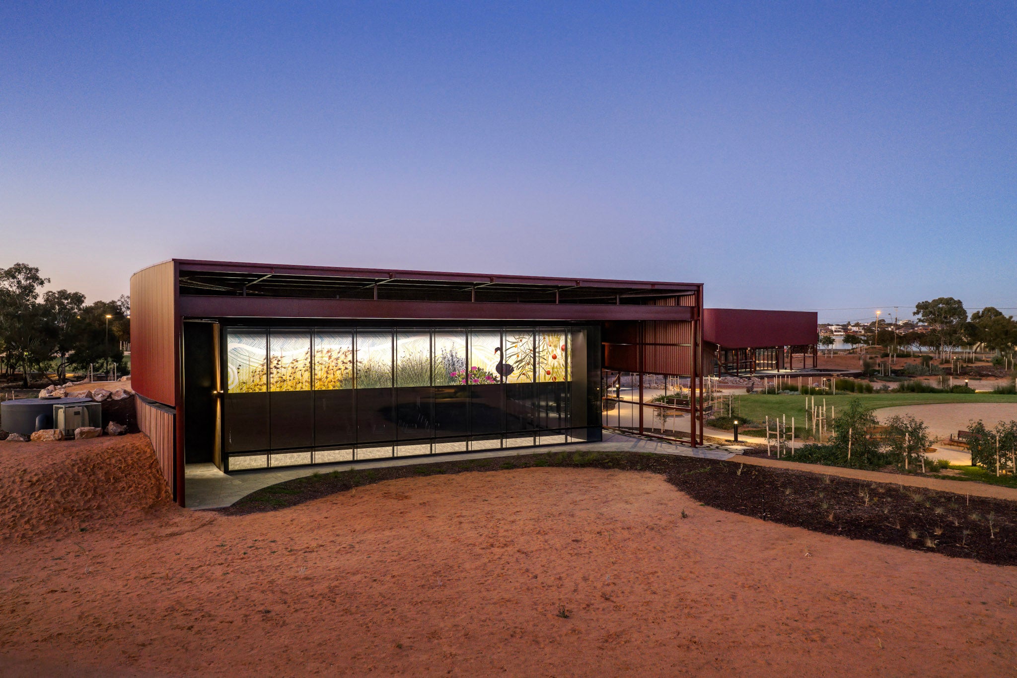Created for the new Yitpi Yartapuultiku Cultural Centre in Port Adelaide, these works highlight significant Kaurna cultural sites through deep research, consultation, and revision. Each design incorporates local plants, totemic animals, and traditional patterns to ensure authentic Kaurna cultural expression and connection to place.