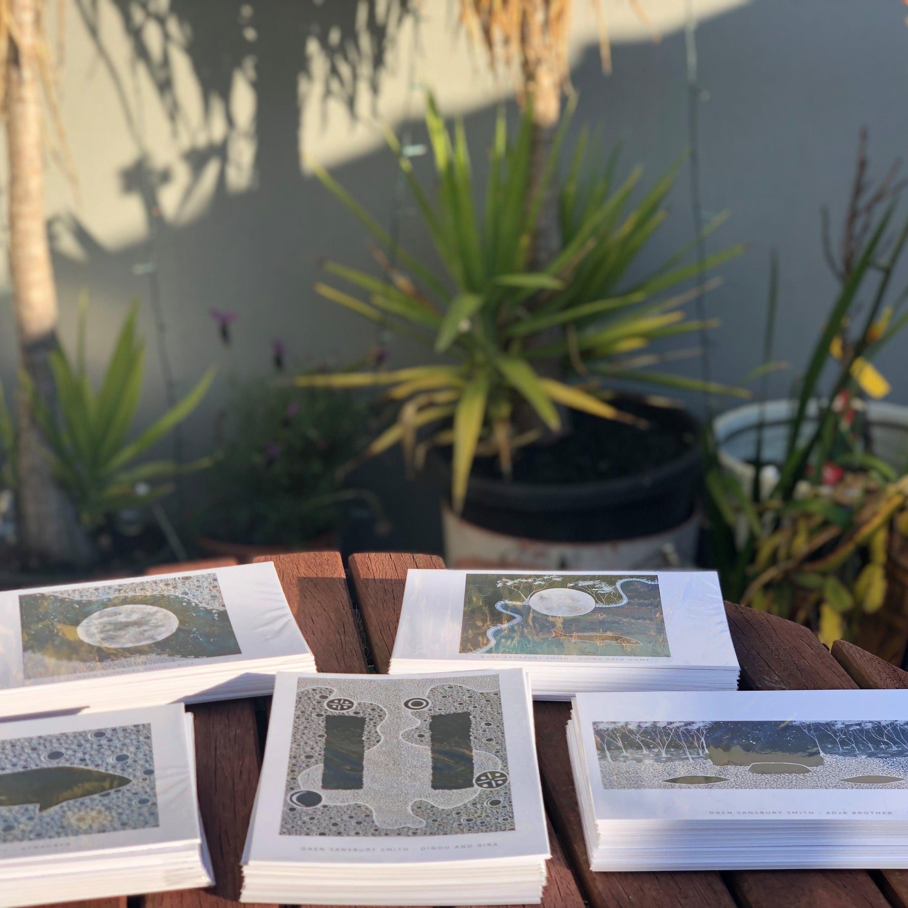 Black Crow expands on Nharangga and Trawoolwaway artist Daen Sansbury-Smith’s representation of Narungga and Palawa stories, art and culture. The exhibition explores transference of inherited knowledge, stories and responsibility from a father to his young children. Through ochre, charcoal and acrylic on canvas, Sansbury-Smith maps Ancestral memory and connection to country, sharing stories of pre and post-contact Aboriginal history and culture.